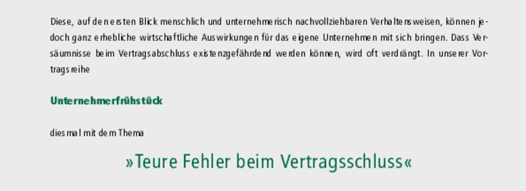 Am 25.02.2016 veranstalten wir in unserem Kölner Büro ein Unternehmerfrühstück zum Thema „Teure Fehler beim Vertragsschluss“. Nähere Informationen zum...